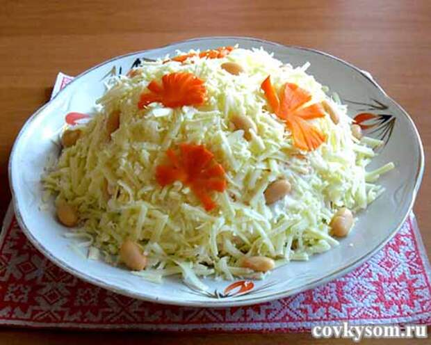 Полезный и легкий салат из консервированной белой фасоли с капустой и сыром.